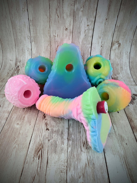 Due to the handmade nature of silicone, please be aware there are minor inconsistencies and imperfections in this art form. Models may vary from one to another and small things like print texture, texture from smoothing, and marks from mold making are common and do not hinder the usage of the toys.