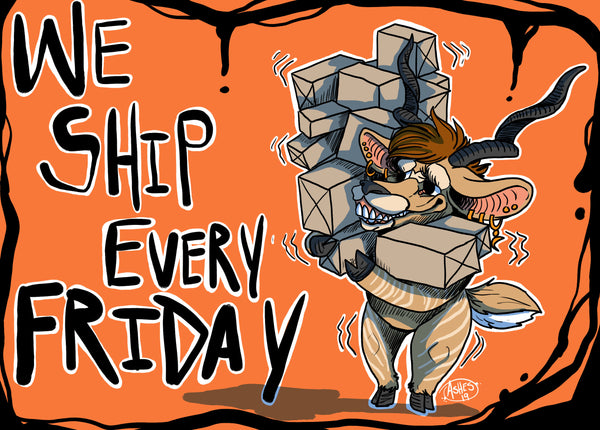 Inventory toys ship every Thursday! We restock inventory one to two times monthly, drops will be announced ahead of time.