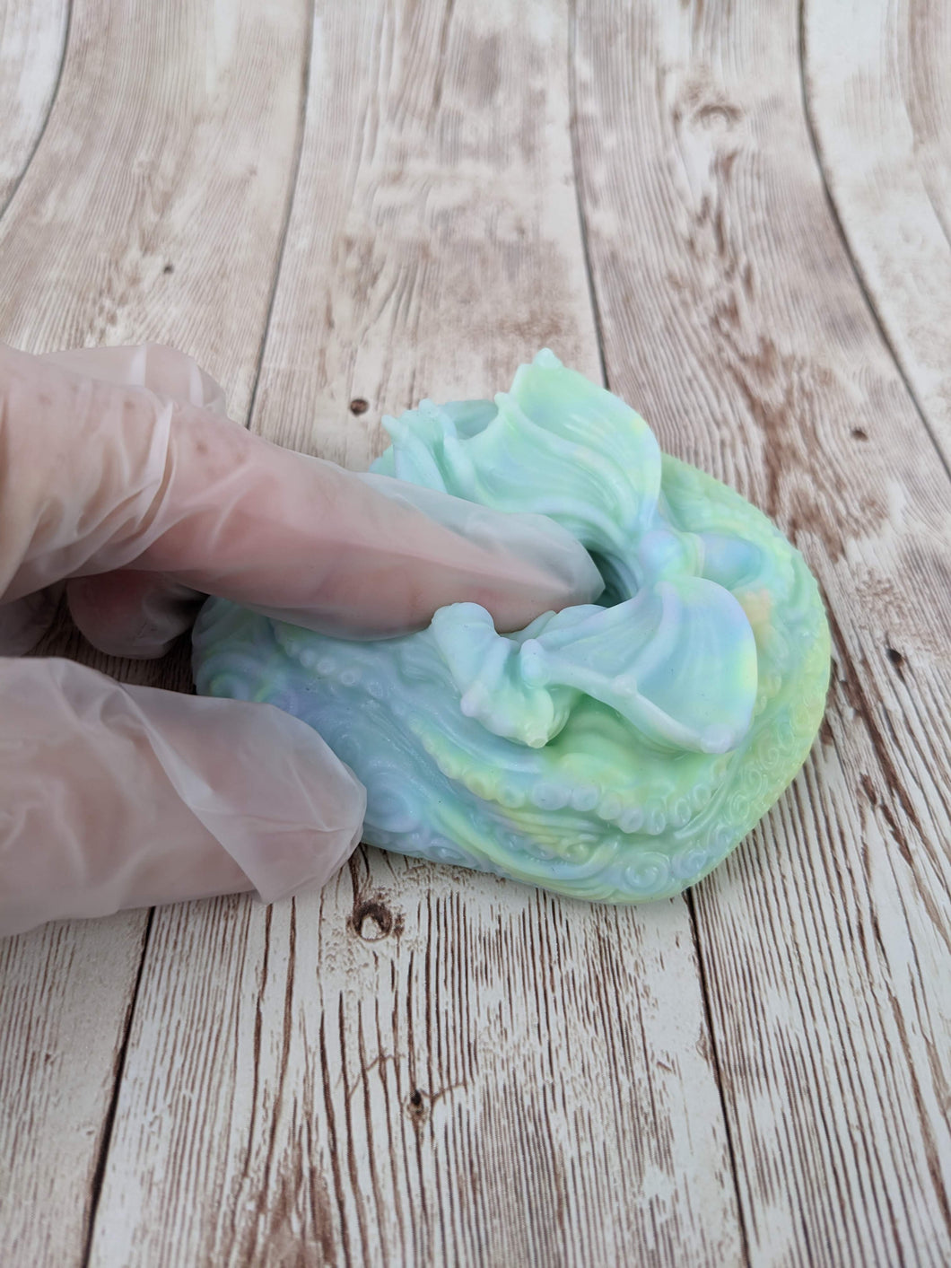 Due to the handmade nature of silicone, please be aware there are minor inconsistencies and imperfections in this art form. Models may vary from one to another and small things like print texture, texture from smoothing, and marks from mold making are common and do not hinder the usage of the toys.