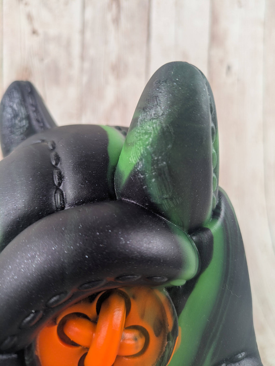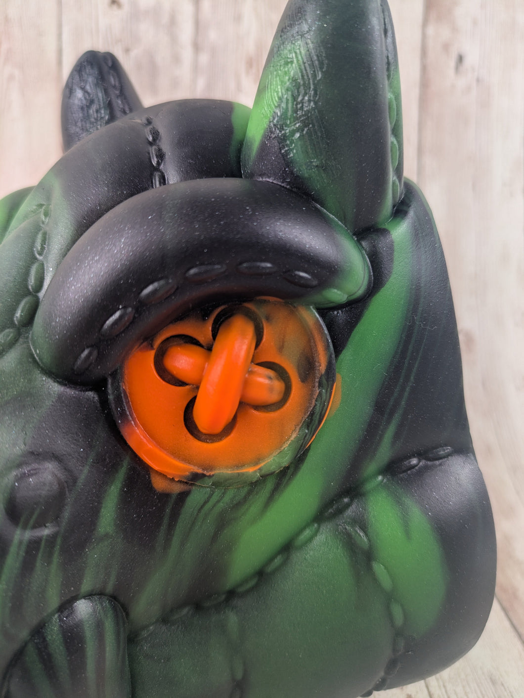 Due to the handmade nature of silicone, please be aware there are minor inconsistencies and imperfections in this art form. Models may vary from one to another and small things like print texture, texture from smoothing, and marks from mold making are common and do not hinder the usage of the toys.